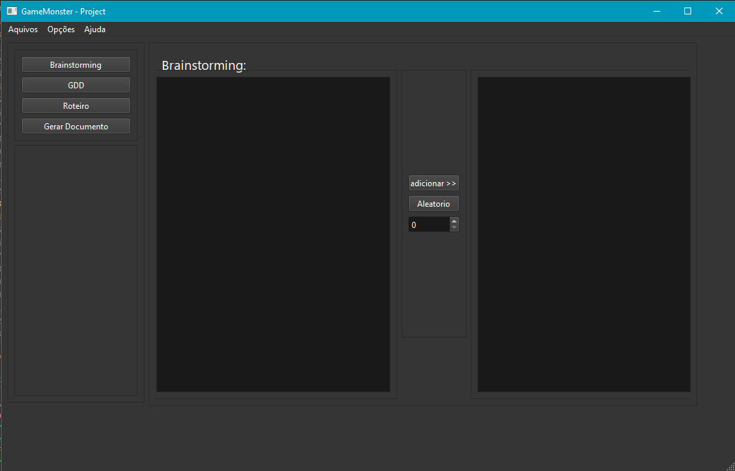 Criador de GDD e ideias para games. Facil de usar e intuitivo.